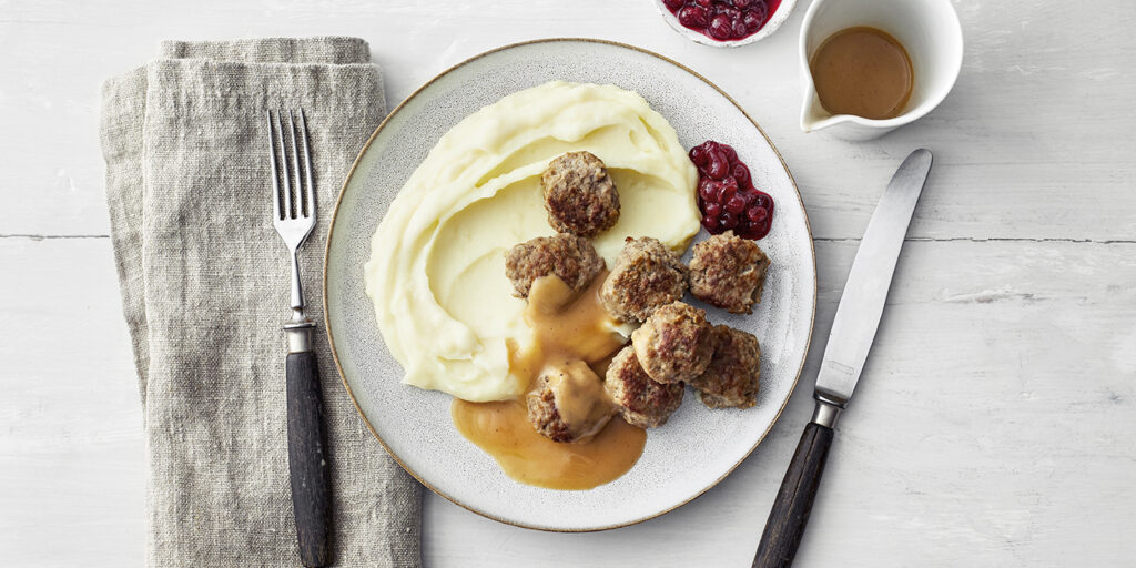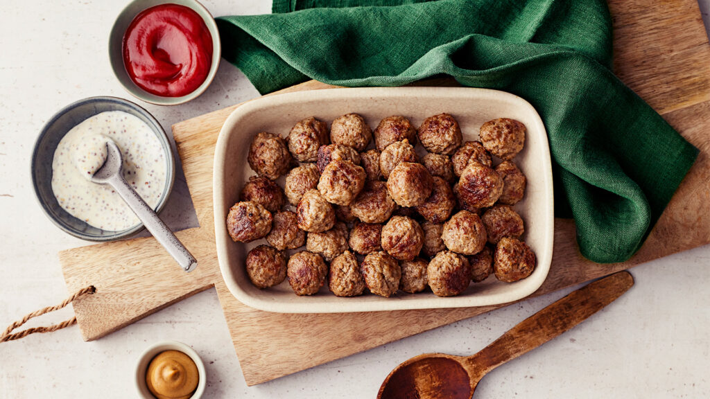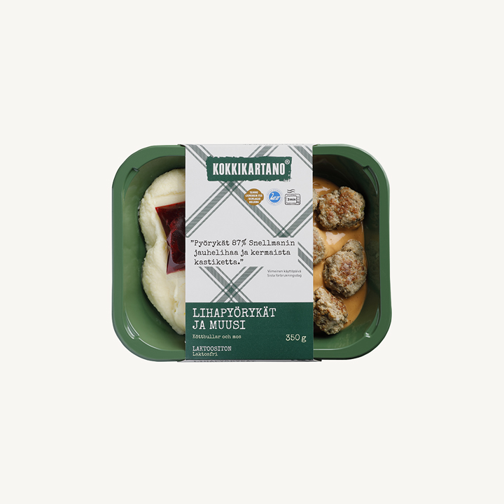 Hyvissä lihapullissa on paljon lihaa. Ja meillä se tarkoittaa kotimaista Snellmanin naudan ja sian jauhelihaa. Pullat tehdään ihan samalla tavalla kuin kotonakin, eli pyöritellään pulliksi ja paistetaan. Yksinkertaista ja toimivaa.