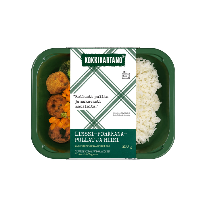 Linssi-porkkanapullat ja riisi 350 g, laktoositon, gluteeniton, vegaaninen